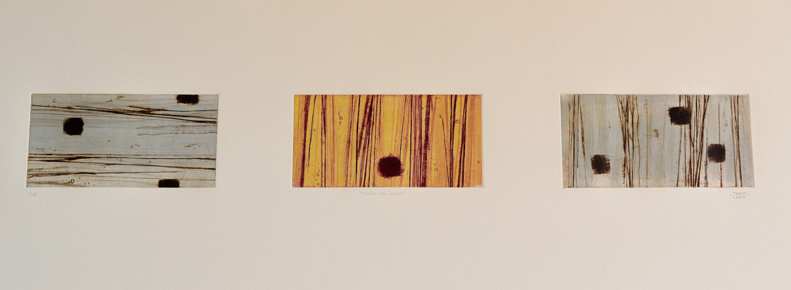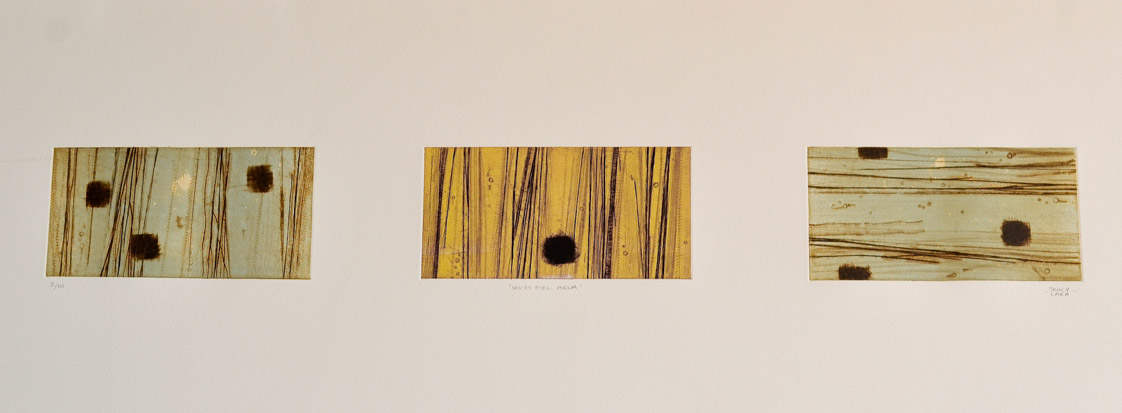 Tracy encuentra la paz y la belleza en el espacio vacío, pero pleno de ideas, y en este, de pronto, un tenue sonido que llega a la luz en grabados o en sus lienzos, a través de capas de color, en donde las transparencias, veladuras y la profundidad del silencio toman relevancia. Como en la pintura, en la obra gráfica de esta artista, la paleta es discreta y moderada, más no por ello es frágil, sino que es también ahí donde reside su fuerza.