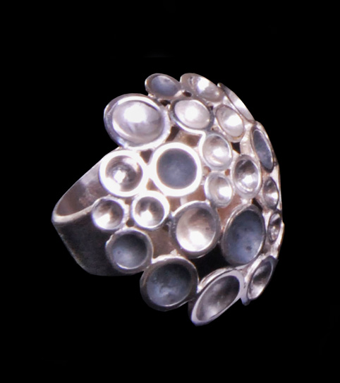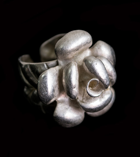 Con un estilo muy personal, abstracto y contemporáneo, cada forma, y cada pieza es una pequeña escultura pensada para fundirse con el cuerpo, y asi dejarse admirar.